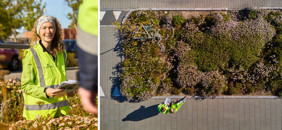 - Tilsynsture, hvor vi tjekker beplantningen i LAR-anlæg. Her følger vi op på entreprenørers drift af anlæggene og vurderer fx beplantningens tilstand, vedligeholdelsesniveau og overholdelse af aftalte standarder.